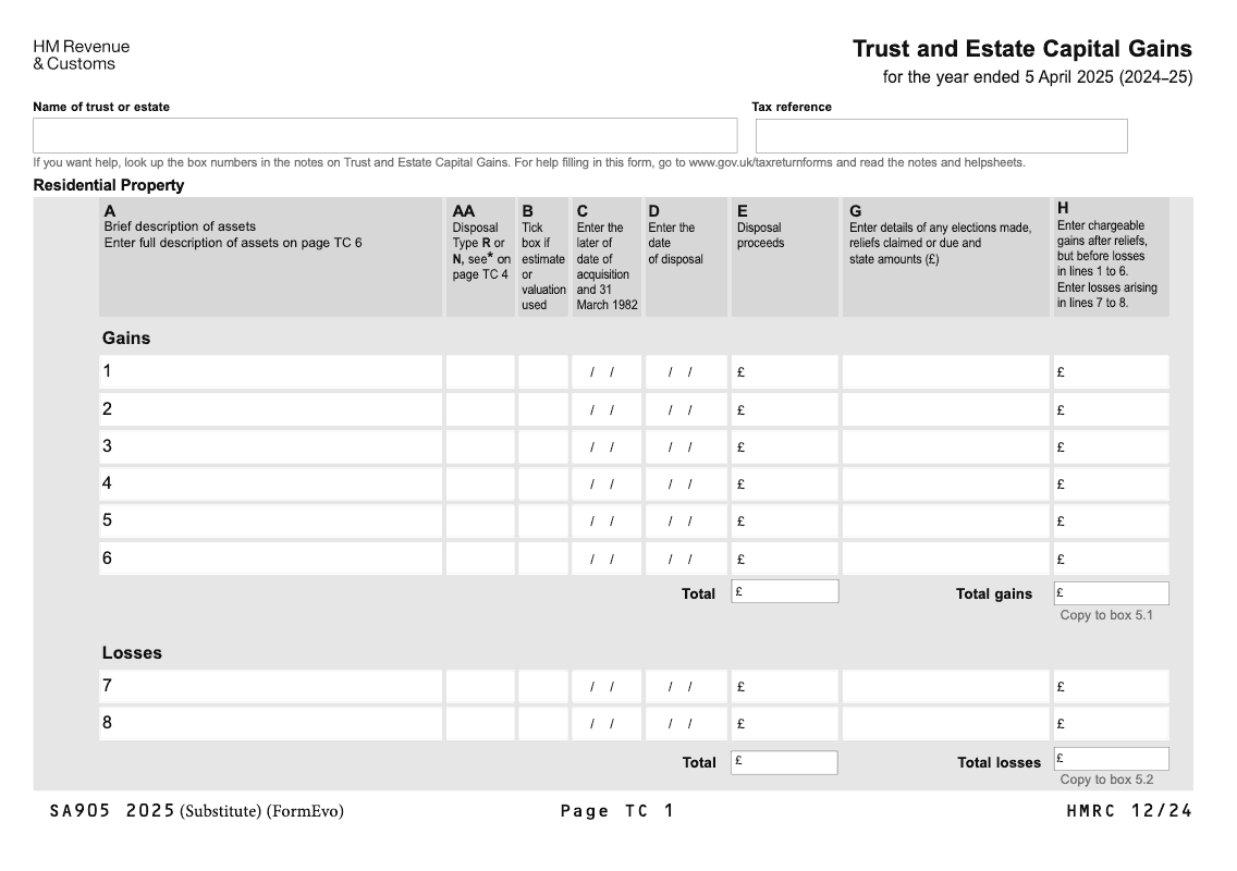 Trust and Estate Capital Gains for year ended 5 April 2025 (2024/25)