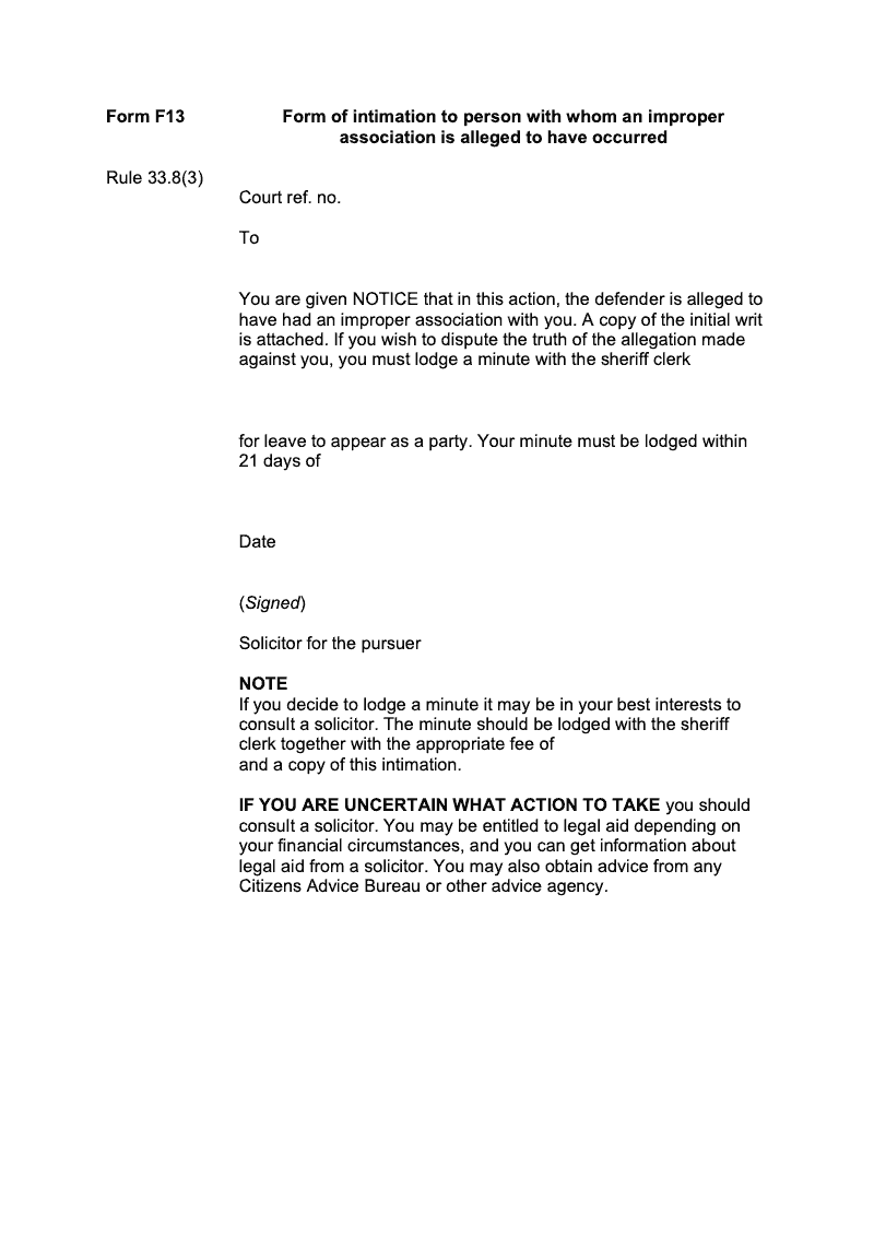 Form of intimation to person with whom an improper association is alleged to have occurred