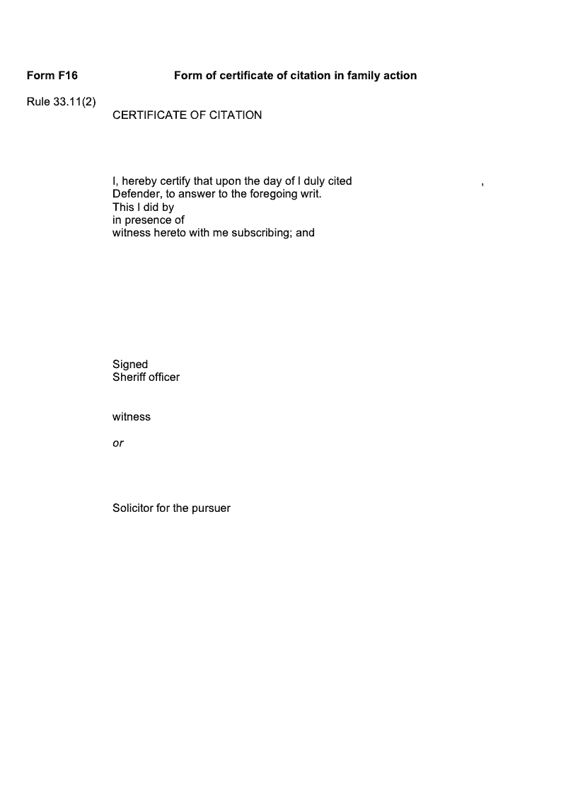 Form of certificate of citation in family action